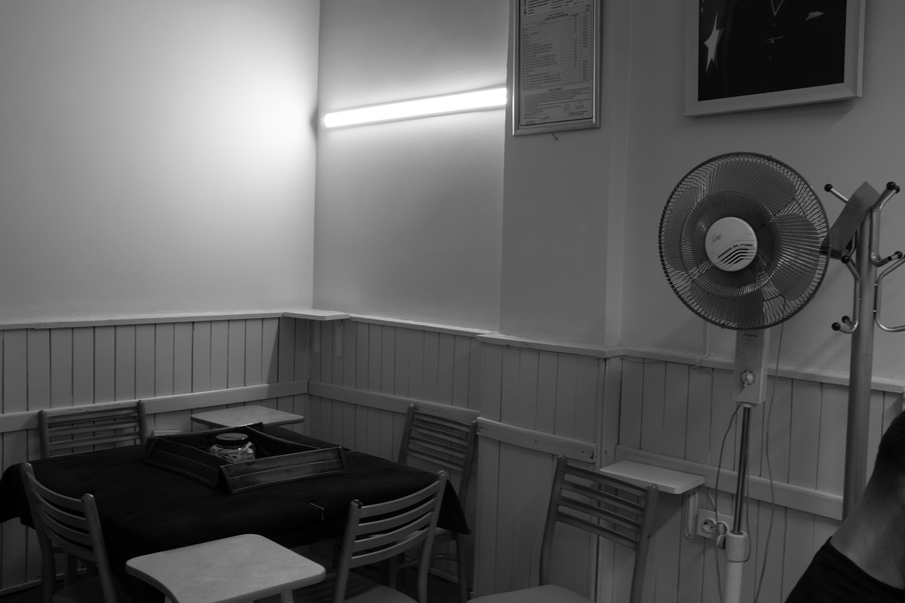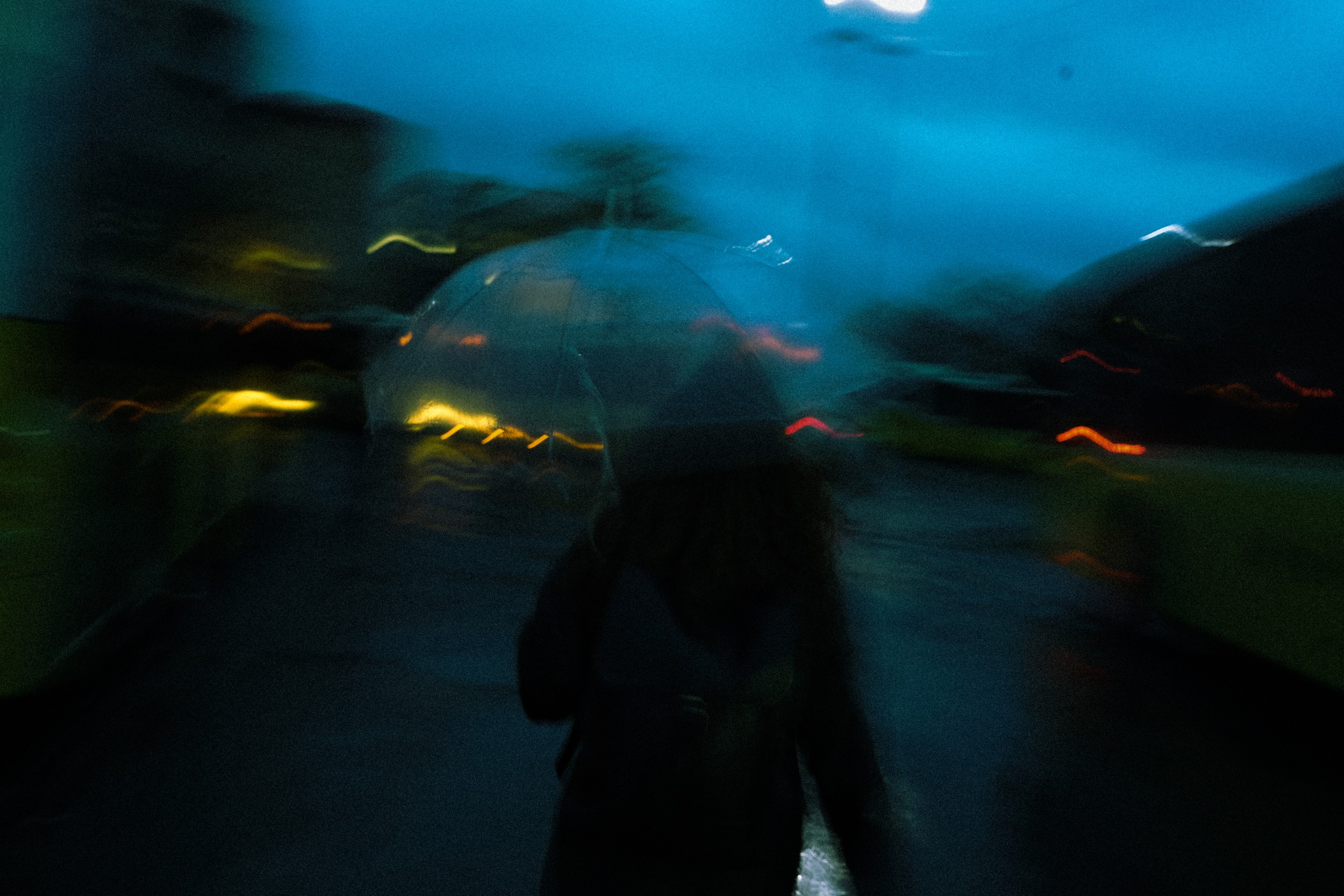 The light hits the neighbours’ window from which there is a reflection of the purple clouds. Cats will come soon asking for food. The walls, the cacti, the table, and paintings of Tima are washed with a pink tint. Curtains move slowly, a hint of coming winds. Tima walks out of her room and downstairs to the kitchen.